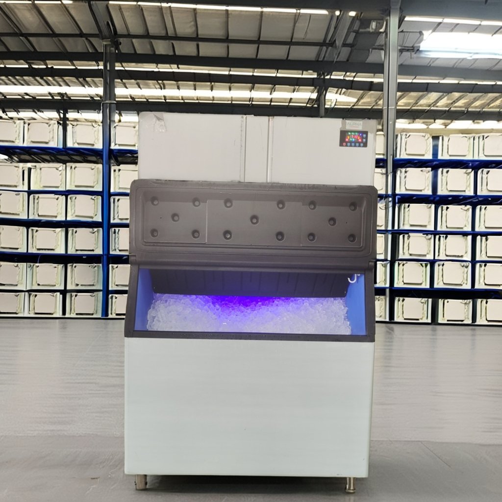 High-capacity commercial ice cube maker with 910KG daily production capacity, ideal for restaurants, cafes, and other food service establishments. Features automatic operation, energy efficiency, and durable stainless steel construction.